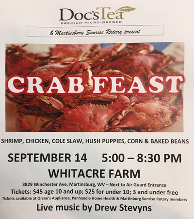 - September 14 Crabfest! Sponsored by Sunrise Rotary.