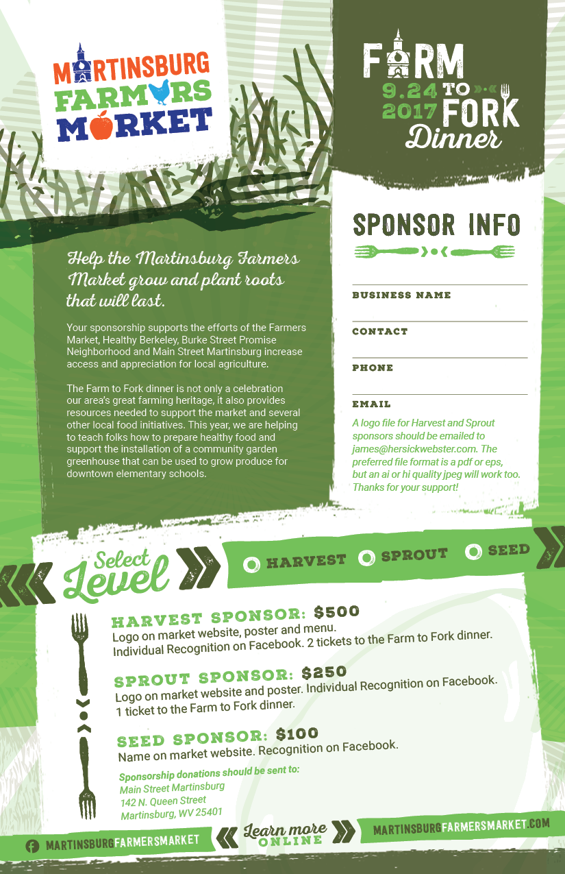 - Farm to Fork Dinner, Sunday, September 24, 2017 from 6:00 PM to 8:00 PM. Almost sold out. For more info/buy tickets online > click here. Sponsorships – see below: