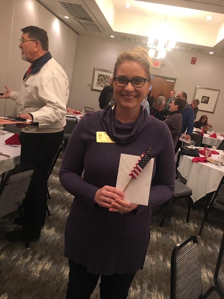 Greeter: Denise Phelps was the greeter and led us in the pledge and invocation.